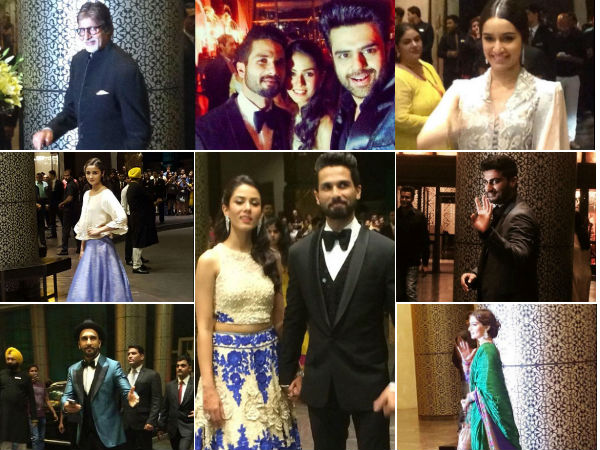 তারকা অতিথিদের মধ্যে প্রথম ছিলেন অমিতাভ বচ্চন যিনি প্যালাডিয়ামে পৌঁছিয়েছিলেন। আলোকচিত্রীদের ক্যামেরার সামনে পোজও দিলেন। এছাড়াও শাহিদের সহ অভিনেত্রীদের মধ্যে আলিয়া ভট, শ্রদ্ধা কাপুর, কঙ্গনা রানাউতও উপস্থিত ছিলেন। [শাহিদ কাপুর ও মীরা রাজপুতের বিয়ে ও ডিনার পার্টির এক্সক্লুসিভ কিছু ছবি!]