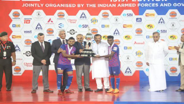 ডুরান্ড কাপ ফাইনালে মুম্বই সিটি এফসিকে ২-১ গোলে হারিয়ে চ্যাম্পিয়ন হয়েছে বেঙ্গালুরু এফসি। এই প্রথম সুনীল ছেত্রী এবং তাঁর দল ডুরান্ড জয়ের স্বাদ পেলেন। আর সেই ডুরান্ডের পুরস্কার বিতরণী অনুষ্ঠানে বিতর্কে জড়ালেন রাজ্যপাল লা গণেশন এবং ক্রীড়া ও যুবকল্যাণমন্ত্রী অরূপ বিশ্বাস। ছবি তোলার লোভ সামলাতে না পেরে এই দুজন যে কাণ্ড ঘটালেন তা নিয়ে সোশ্যাল মিডিয়ায় তুঙ্গে বিতর্ক।