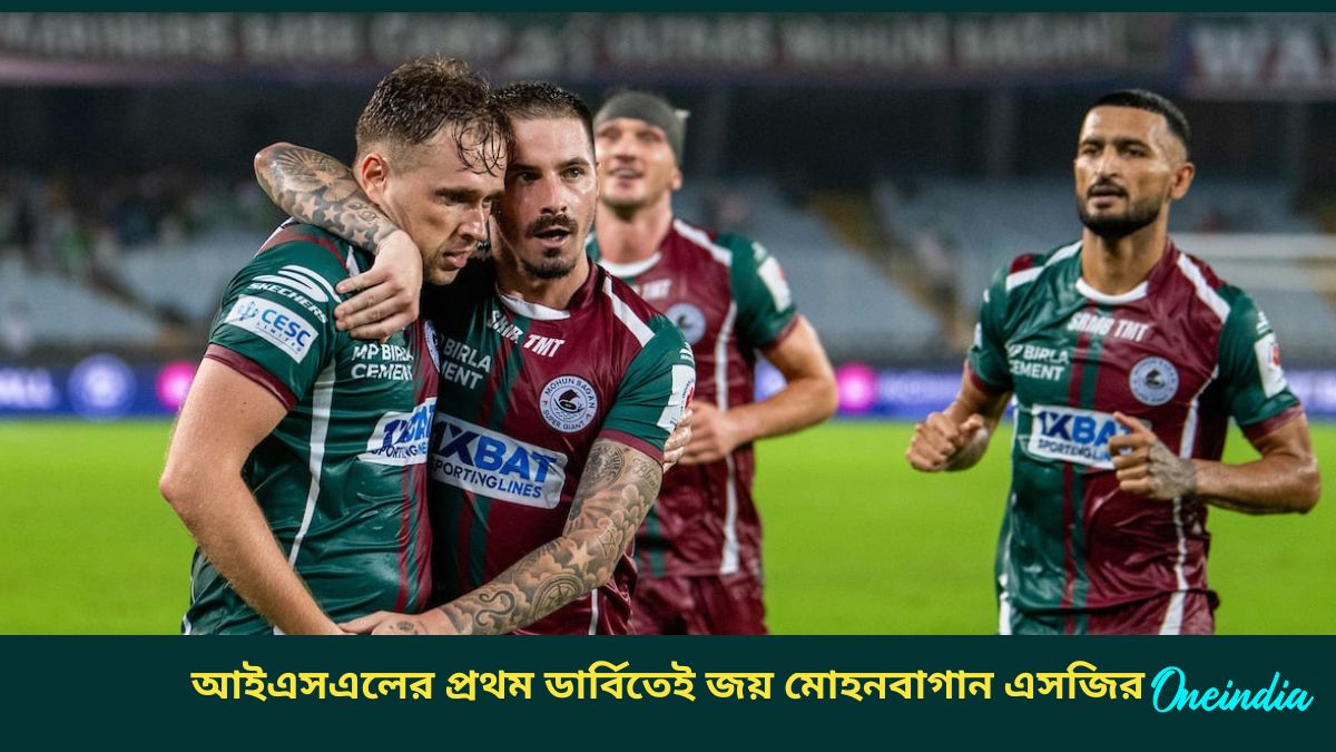 বড় ম্যাচের আগে মিনি ডার্বিতেই দুরন্ত ছন্দে মোহনবাগান এসজি। চলতি আইএসএলের প্রথম ডার্বিতে সহজ জয় পেল সবুজ মেরুন ব্রিগেড। শনিবার বৃষ্টিভেজা যুবভারতীতে মহমেডান স্পোর্টিং ক্লাবকে ৩-০ গোলে হারিয়ে দিল মোহনবাগান এসজি।