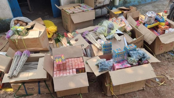 এর আগে মঙ্গলবার সূত্র মারফত খবর পেয়ে উলুবেড়িয়ার খলিসানী মালপাড়া এলাকায় বিভিন্ন জায়গায় অভিযান চালায় রাজাপুর থানার পুলিশ। অভিযান চালিয়ে প্রায় ১২৫ কেজি নিষিদ্ধ শব্দবাজি ও আতসবাজি বাজেয়াপ্ত করে পুলিশ। পাশাপাশি দু'জনকে গ্রেফতার করা হয়েছে বলে জানা গেছে।