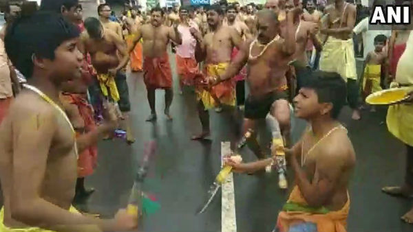 তামিলনাড়ুর রাস্তায় এদিন চিরারিত পরম্পরা মেনে পিঠে ছুরিকাঘাত করে শক্তির আরাধনার রীতি প্রচলিত। আজ সেই ছবিই উঠে এলো বিজয়া দশমী উপলক্ষ্যে কোয়েম্বাট্যুরের রাস্তায়।