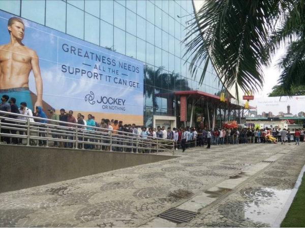 স্যোশাল মিডিয়ায় একটি ভিডিও ক্লিপ বেরিয়েছে, সেখানে দেখা গিয়েছে, অন্ধ্রপ্রদেশে হাজারে হাজারে লোক লাইনের ভিড়ে দাঁড়িয়ে রয়েছে। এবং সেই লাইন তিন কিলোমিটার লম্বা। প্রসাদ আইম্যাক্স থিয়েটারের বাইরে এই লাইন পড়েছে। ভোর সাতটা সময়ে নেওয়া সেই ভিডিওয় এই ছবি ধরা পড়েছে।