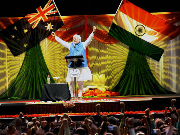 গত ২৮ বছরে এই প্রথম ভারতের কোনও প্রধানমন্ত্রী অস্ট্রেলিয়া সফরে গেলেন। ম্যাডিসন স্কোয়ারে যেভাবে একজন রকস্টারের মতো অভ্যর্থনা দেওয়া হয়েছিল মোদীকে, সিডনির অলফোনস আরেনায় এদিন তার অন্যথা হয় নি।