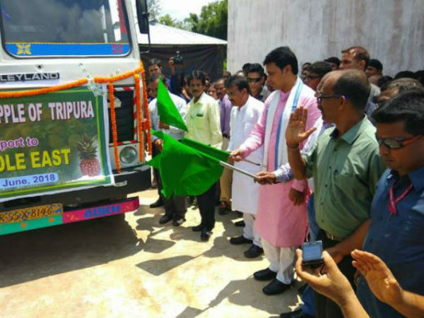 ত্রিপুরার আনারস এবার দুবাইয়ের পথে। কুইন প্রজাতির একটন আনারস দুবাই পাঠানো হয়েছে।পতাকা নেড়ে রাজ্যের ফলের বিদেশ যাত্রার সূচনা করেন ত্রিপুরার মুখ্যমন্ত্রী বিপ্লবকুমার দেব এবং কৃষিমন্ত্রী প্রাণজিত সিনহা।