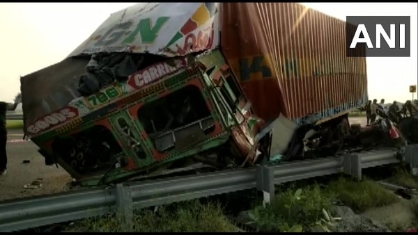 হাইওয়েতে কন্টেনারে ধাক্কা