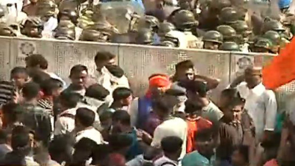 যোধপুর পার্কে মিছিল আটকে দেওয়ার পরেই ইট ছুঁড়তে শুরু করে এবিভিপির সমর্থকরা। পুলিশ প্রথমে সতর্ক করার চেষ্টা করে। পরে জমায়েতকে বেআইনি বলে ঘোষণার হুঁশিয়ারি দেওয়া হলে ব্যারিকেডের সামনেই অবস্থান শুরু করেন অবিভিপির সমর্থকরা।