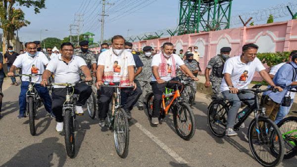 বিগত বেশ কিছুদিন ধরেই বিভিন্ন ক্রীড়া সংস্থা ও অসমবাসীর তরফে মহিলা বক্সার লাভলিনাকে শুভেচ্ছা জানানো চলছে। আজ গুয়াহাটিতে সেই উদ্যোগ আরও গতি পেল মুখ্যমন্ত্রী হিমন্ত বিশ্বশর্মার পদক্ষেপে। লাভলিনাকে শুভেচ্ছা জানানোর জন্য 'গোল ফর গ্লোরি, লাভলিনা' নামে ক্যাম্পেন বা প্রচার শুরু করলেন তিনি। আর তা শুরু হল নজিরবিহীনভাবে। পড়শি রাজ্য বাংলাতে যেখানে ক্ষমতাসীন তৃণমূল কংগ্রেস সরকার ও বিরোধী দল বিজেপির মধ্যে জোর সংঘাতের বাতাবরণ, সেখানে রাজ্যের মুখ লাভলিনাকে উৎসাহিত করতে বিজেপি-শাসিত অসমের শাসক ও বিরোধী দল চলে এল পাশাপাশি। লাভলিনাকে শুভেচ্ছা জানাতে বেশ কিছুক্ষণ সাইকেল চালিয়ে একটি অনুষ্ঠানে যোগ দিতে যান হিমন্ত। তাঁর সঙ্গে বিধানসভার অধ্যক্ষ, মন্ত্রী, বিধায়কদের সঙ্গে সাইকেল চালালেন ছিলেন বিরোধী দলনেতাও। এমনকী পরে যখন এদিনের কর্মসূচির সাফল্যের কথা জানাতে হিমন্ত টুইট করেন সেখানেও ধন্যবাদ জানিয়েছেন বিরোধী দলনেতার প্রতি। এই সৌজন্যের বার্তা তাই এক অন্য মাত্রা যোগ করেছে এদিনের কর্মসূচি।