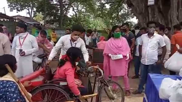 বসিরহাট মহকুমার বসিরহাট দক্ষিণ বিধানসভা নিমদাঁড়ি কোদালিয়া গ্রাম পঞ্চায়েতের পাতিলাচন্দ্রে সুন্দরবন, সীমান্ত সহ মহকুমার হাজার খানেক প্রতিবন্ধী ভাই-বোনেদের স্বাস্থ্যপরীক্ষা, জীবাণু মুক্তকরণ, ঔষধ দেওয়ার পাশাপাশি খাদ্য সামগ্রী বিতরণ করলেন উত্তর ২৪ পরগণা জেলা পরিষদের সদস্য শাহানুর মন্ডল, উপপ্রধান সাহারাব মন্ডল ও বসিরহাট দক্ষিণ বিধানসভার বিধায়ক ফুটবলার দীপেন্দু বিশ্বাসরা। টাকি রোডের ধারে প্রায় ১০০০ প্রতিবন্ধীকে চাল, ডাল, সর্ষের তেল, ছোলা ও মিছরি দেওয়া হয়।