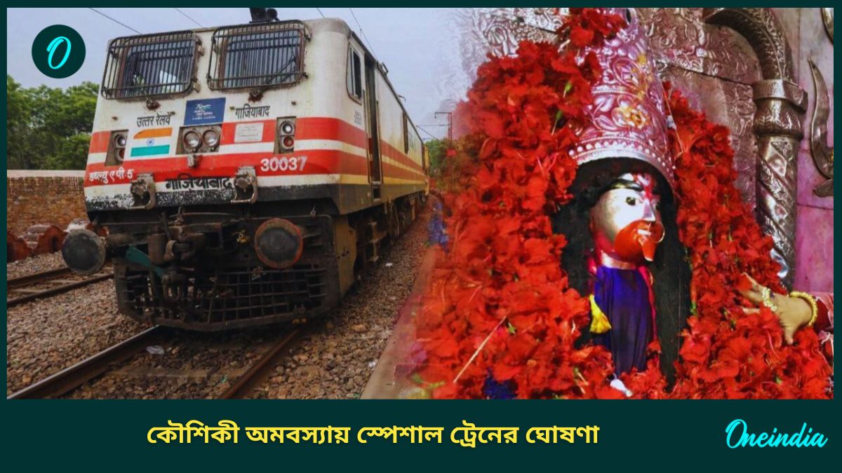কৌশিকী অমাবস্যা উপলক্ষে কয়েক লাখ মানুষের জমায়েত হয় তারাপীঠে (Kaushiki Amavasya-Train)। পুজো দেন তারা মা'কে। সকালেই যাতে ভক্তরা সেখানে পৌঁছতে পারে, সেজন্য স্পেশাল ট্রেনটি হাওড়া স্টেশন থেকে সকাল ৫:৪৫ টায় ছাড়বে। সেদিনই রামপুরহাট পৌঁছবে সকাল ৯:৫০ মিনিটে। সেদিনই রামপুরহাট-হাওড়া স্পেশাল ট্রেনটি চালানো হবে। পূর্ব রেলের বিজ্ঞপ্তি অনুযায়ী, বেলা ১১:৩২ মিনিটে রামপুরহাট থেকে স্পেশাল ট্রেনটি ছাড়বে হাওড়ার উদ্দেশ্যে। সেই মতো বিকাল ৩:৫৫ মিনিটে ট্রেনটি পৌঁছবে।