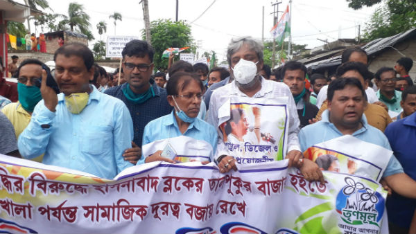 শতাধিক কর্মী তৃণমূলে, পেট্রোপণ্যের মূল্যবৃদ্ধিতে টাকি রোডের প্রতিবাদ মিছিল